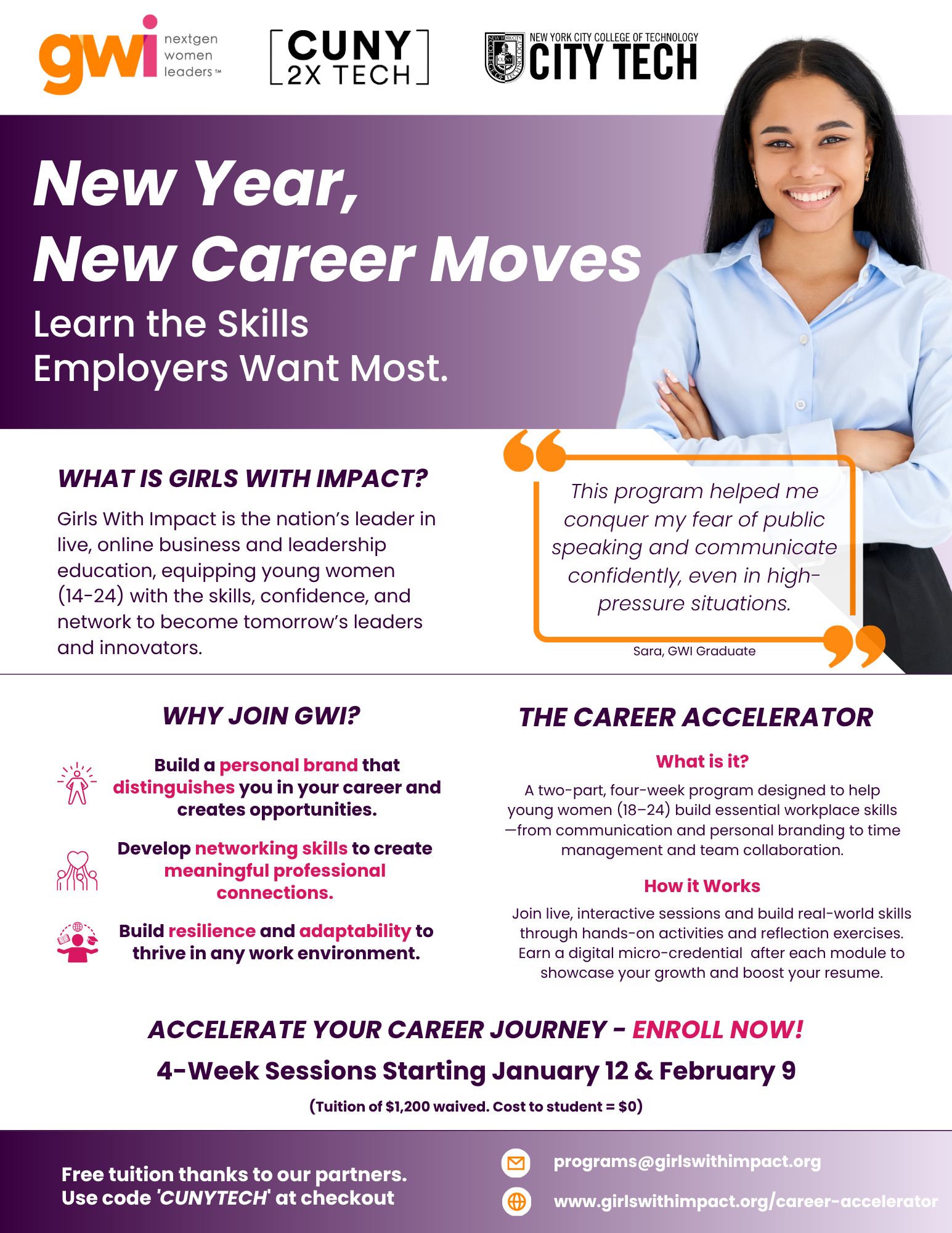 Girls With Impact — a national nonprofit equipping young women with real-world business and career skills — is offering no-cost, live-online programs starting January 12 & February 9: